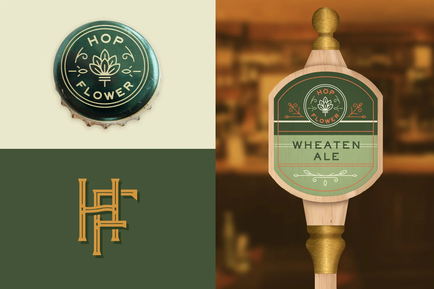 Logo, branding, menu, tap handle and package design for Bay Area craft brewery and restaurant.